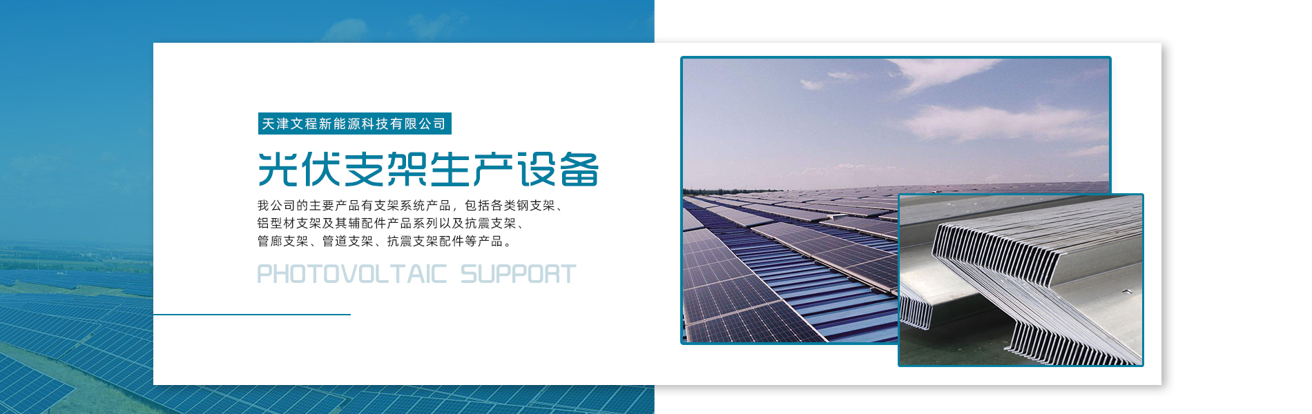 天津文程新能源科技有限公司成立于2021年,是專注于集中式、分布式、漁光互補和農光互補等清潔能源發(fā)電的綜合性企業 公司是集設計、研發(fā)、生產、制造為一體的綜合型企業。公司占地面積20000平方米,注冊資金5000萬元整。公司坐落于華北鋼鐵重鎮--大邱莊,距天津市區50公里、鄰104和205國道及京滬高速,交通十分便捷。 本公司擁有三個生產車間,其中兩個冷彎型鋼車間,一個鋅鋁鎂型鋼車間,擁有自動冷彎成型機10條,自動數控沖孔機10條以及焊接加工等設備。主要生產產品有:太陽能光伏支架、各種規(guī)格的C/Z/U型鋼、抗震支架、管廊支架及整套配件等。